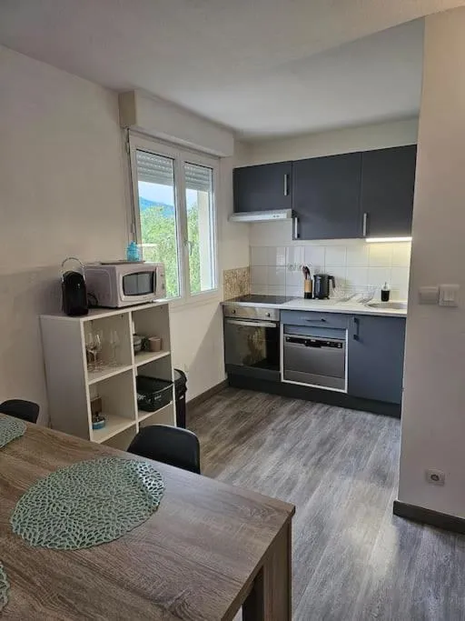 Chez Virginie et Sylvie T2坐落于阿尔贝维尔,距离Col de la Madeleine有43公里,距离Palais de l Ile有46公里,距离安锡城堡有46公里。这家住宿距离阿尔贝维尔哈雷奥林匹克会展中心有13分钟步行路程,为客人提供免费WiFi,内部提供私人停车位。 这家公寓配有1间卧室、1间浴室、床上用品、毛巾、带卫星频道的平板电视、用餐区、设施齐全的厨房以及山景阳台。1间浴室提供浴缸和吹风机。 尚贝里-萨瓦省机场距离住宿有59公里。